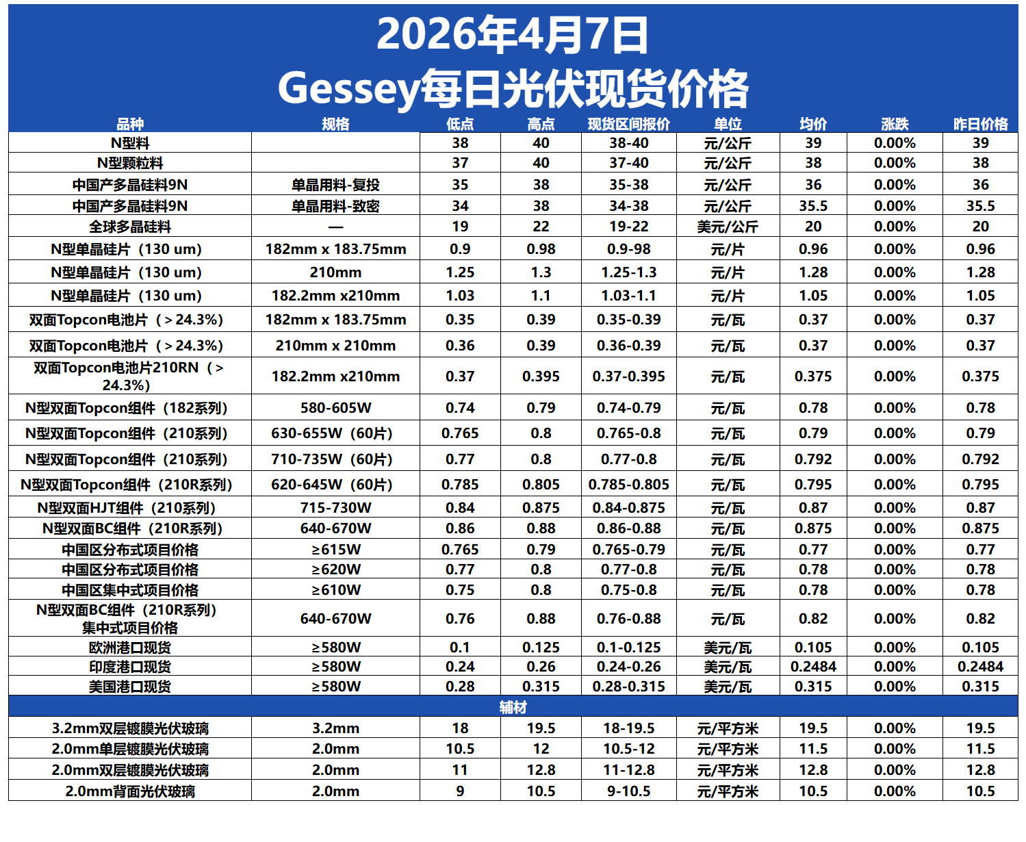 Gessey:2026年4月7日每日光伏市場行情2026-04-07 17:17來源:gessey蓋錫咨詢瀏覽數(shù):274次
