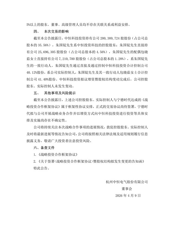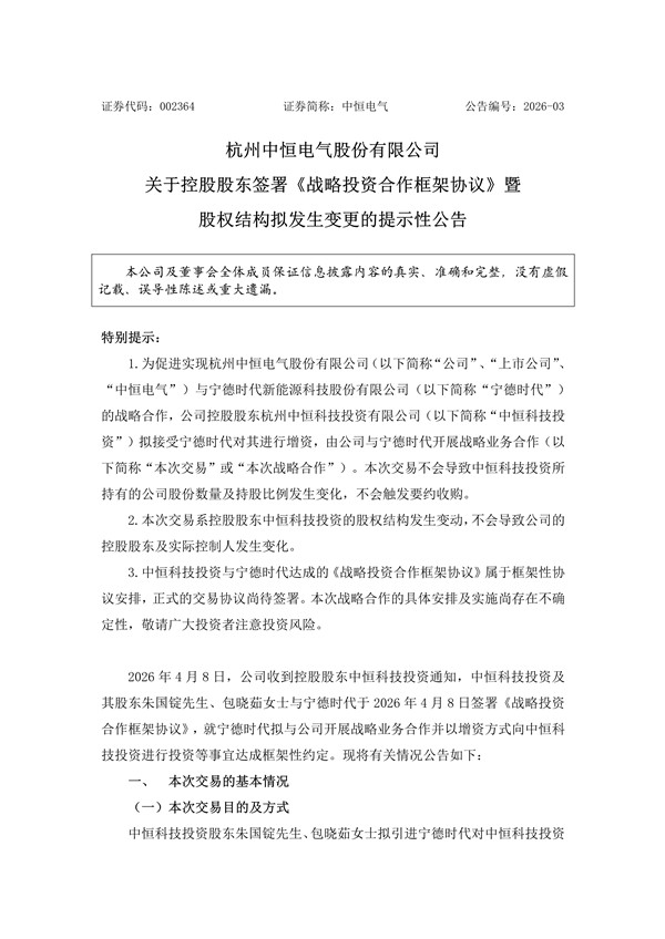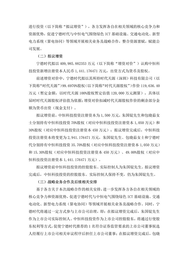 【核心數據提煉】4月8日晚,中恒電氣公告,寧德時代擬以約41億元(股權+現金)增資其控股股東中恒科技投資,獲49%股權;以時代天源99.697%股權作價11.96億元+現金29.04億元出資,實控人仍為朱國錠。寧德時代將獲1董事+1副總提名權,雙方聚焦綠色ICT、交通電動化、算電協(xié)同,中恒HVDC+寧德儲能/電池深度互補。 中恒電氣公告稱,公司控股股東中恒科技投資及其股東朱國錠、包曉茹與寧德時代簽署《戰(zhàn)略投資合作框架協(xié)議》。寧德時代擬以約41億元認購中恒科技投資新增注冊資本,其中包含以其持有的時代天源99.697%股權作價約11.96億元及現金出資。 增資完成后,寧德時代將持有中恒科技投資49%股權,公司控股股東及實際控制人仍為朱國錠。此外,寧德時代將推薦1名董事候選人和1名副總經理候選人參與公司治理。雙方將圍繞綠色ICT基礎設施、交通電動化、新型電力系統(tǒng)(算電協(xié)同)等領域開展相關業(yè)務及戰(zhàn)略合作。 擬議增資寧德時代擬以約41億元(公告數字:409,985.882353萬元)認購中恒科技投資新增注冊資本人民幣1,441.176471萬元,出資方式為貨幣及股權。 前述增資對價中,寧德時代擬以其所持時代天源(深圳)科技有限公司(以下簡稱“時代天源”)99.6970%股權(以下簡稱“時代天源股權”)作價119,636.40萬元(暫定金額,以時代天源 100%股權暫定估值 120,000 萬元測算),具體以屆時時代天源股權評估值為依據;增資對價扣減時代天源股權作價的剩余部分金額為貨幣出資(現金支付)。 擬議增資前,中恒科技投資注冊資本為1,500萬元,朱國錠先生和包曉茹女士分別持有中恒科技投資70%股權(對應中恒科技投資注冊資本1,050萬元)和30%股權(對應中恒科技投資注冊資本450萬元);擬議增資完成后,中恒科技投資注冊資本將變更為2,941.176471萬元,朱國錠先生、包曉茹女士和寧德時代分別持有中恒科技投資35.70%股權(對應中恒科技投資注冊資本1,050萬元)和15.30%股權(對應中恒科技投資注冊資本450萬元)、49.00%股權(對應中恒科技投資注冊資本1,441.176471萬元)。擬議增資前中恒科技投資的控股股東、實際控制人為朱國錠先生。 擬議增資完成后,中恒科技投資的控股股東、實際控制人保持不變,仍為朱國錠先生。 公告顯示,寧德時代將通過一定方式參與中恒科技控股上市公司中恒電氣治理,即:在擬議增資完成后,朱國錠先生作為上市公司實際控制人、中恒科技投資作為上市公司控股股東,將通過行使股東權利等方式,促使寧德時代推薦的 1 名符合證券監(jiān)管要求的上市公司董事候選人經履行上市公司相關審議程序后擔任上市公司董事;在擬議增資完成后,包曉茹女士作為上市公司董事長,促使寧德時代推薦的1名符合證券監(jiān)管要求的上市公司副總經理候選人經履行上市公司相關審議程序后擔任上市公司副總經理。朱國錠先生及包曉茹女士與寧德時代在中恒科技投資層面及/或上市公司層面等均不構成一致行動關系或共同控制。 基于各方關于本次戰(zhàn)略合作的相關安排,進一步發(fā)揮各方各自在相關領域的核心競爭力和資源優(yōu)勢,促進寧德時代與中恒電氣圍繞綠色ICT基礎設施、交通電動化、新型電力系統(tǒng)(算電協(xié)同)等領域開展相關業(yè)務及戰(zhàn)略合作。 公開資料顯示,杭州中恒電氣股份有限公司(簡稱“中恒電氣”)成立于1996年,注冊資本約?5.6356億元?,主營業(yè)務涵蓋通信電源、數據中心電源、充電樁、電力電子設備等領域,在ICT基礎設施電源領域擁有深厚積累。 作為國內新型電力系統(tǒng)中穩(wěn)健可靠的電源解決方案提供商,中恒電氣專注于低壓成套設備、直流電源、交流電源等核心產品的研發(fā)與生產,面向電力網絡提供不間斷電源保障、支撐電網節(jié)點安全穩(wěn)定運行。并在高壓直流技術領域具備顯著領先優(yōu)勢,構建了完善的知識產權矩陣和技術標準話語權。 從業(yè)務表現來看,數據中心電源是公司最大增長引擎。 2024年該業(yè)務收入達6.68億元,同比增長111.05%,占總營收比重34.06%;2025年僅上半年實現營收就已達4.06億元,延續(xù)高增長態(tài)勢。在HVDC市場,公司市占率穩(wěn)居行業(yè)頭部,曾與阿里巴巴、騰訊、百度及第三方數據中心服務商、超算中心等建立良好合作關系,其中作為阿里巴巴數據中心項目HVDC及列頭柜設備供應商,2022年雙方曾簽署了約8億元采購及供應合同;同時也曾為騰訊提供HVDC電源產品,包括2022年與百度達成戰(zhàn)略合作并聯合發(fā)布平湖直流鋰電系統(tǒng)。 電力系統(tǒng)方面核心業(yè)務同樣表現穩(wěn)健。 電力操作電源系統(tǒng)2024年收入4.78億元,毛利率25.96%,為國家電網、發(fā)電集團等提供不間斷電源保障,2025年上半年營收1.45億元;通信電源系統(tǒng)2024年收入3.05億元,毛利率26.08%,為5G基站、邊緣數據中心提供解決方案,2025年上半年營收1.71億元;軟件開發(fā)與服務2024年收入3.90億元,毛利率36.11%,為電網公司提供智能調度、能效管理等軟件服務,這些業(yè)務均與寧德時代及儲能產業(yè)形成高度契合。 此次合作的算電協(xié)同價值尤為突出。 隨著AI算力需求爆發(fā),數據中心能耗問題日益凸顯,中恒電氣在HVDC領域的技術優(yōu)勢,結合寧德時代的儲能系統(tǒng),有望快速落地“電源+儲能”一體化解決方案,為數據中心提供不間斷綠色電力,正是雙方“新型電力系統(tǒng)(算電