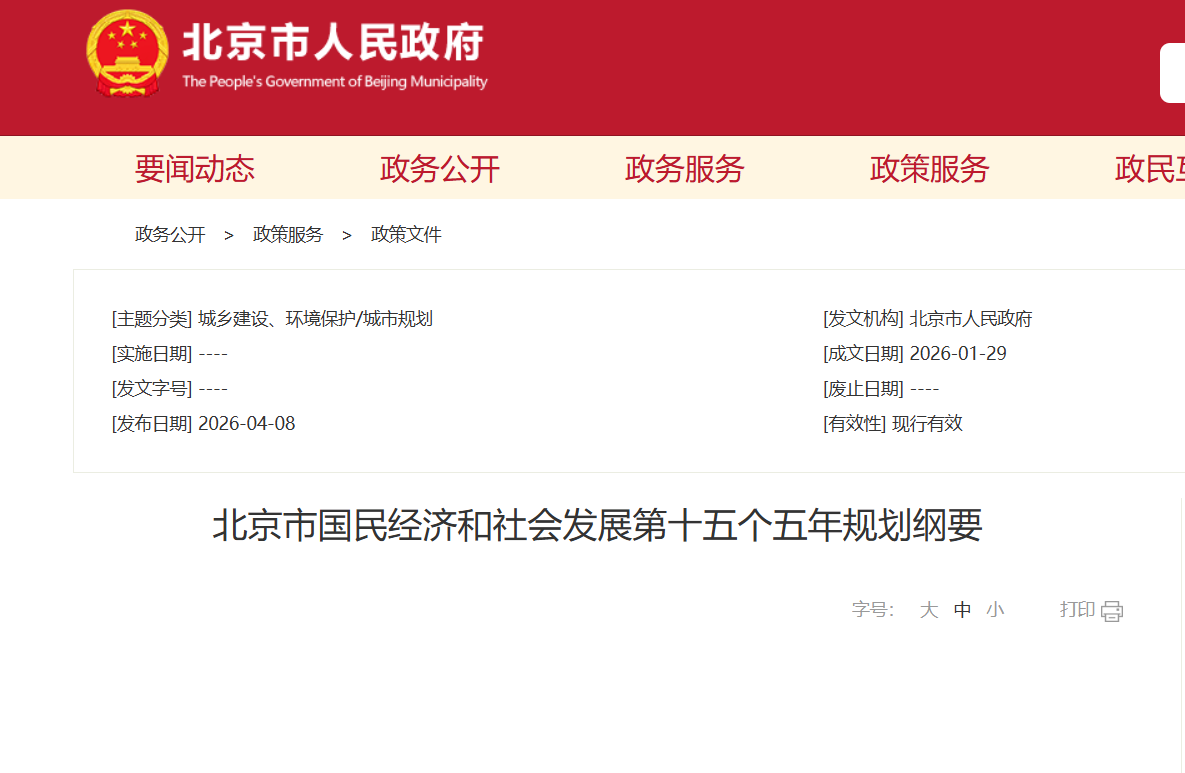 北京“十五五”規(guī)劃發(fā)布:新增風(fēng)光裝機(jī)200萬(wàn)千瓦,全面推廣第五立面光伏《北京市國(guó)民經(jīng)濟(jì)和社會(huì)發(fā)展第十五個(gè)五年規(guī)劃綱要》2026-04-09 15:06來源:gessey蓋錫咨詢瀏覽數(shù):259次