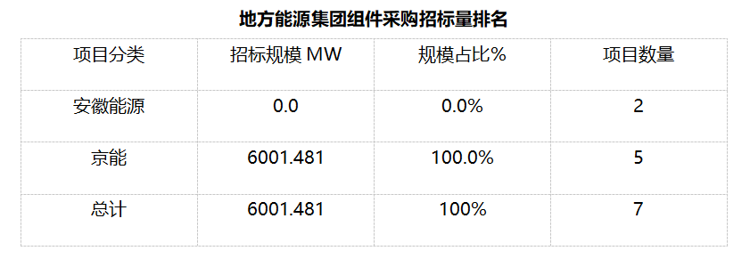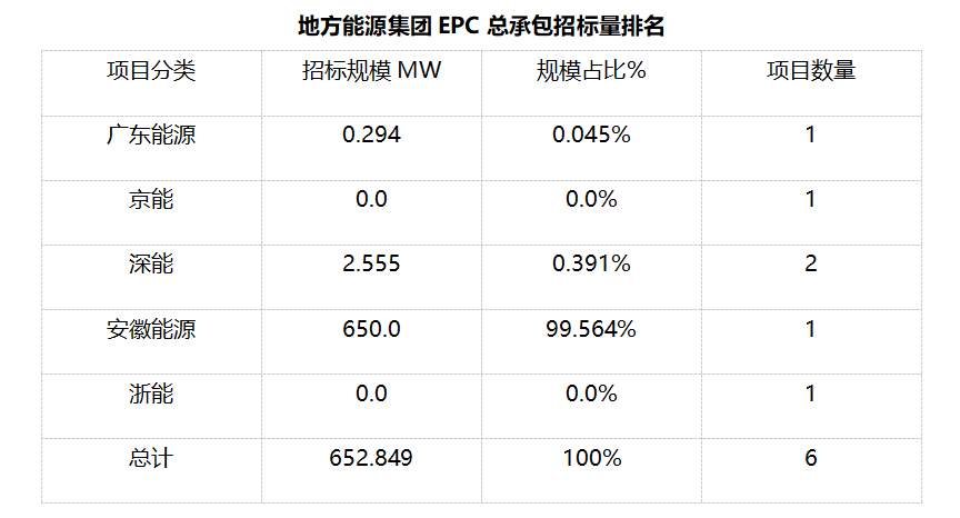 我們統(tǒng)計包含大型央企國企、地方能源集團、地方政府機關(guān)、兩大電網(wǎng)、央企總包企業(yè)、知名光伏企業(yè)等,其中地方能源集團占總招標(biāo)規(guī)模較高,具體各企業(yè)排名如下表: