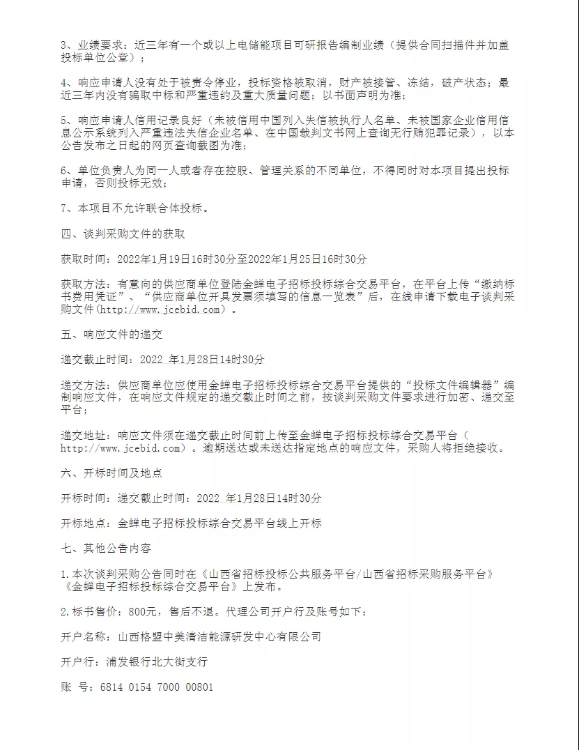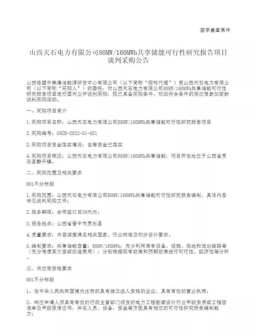 1月19日,山西天石電力有限公司發(fā)布80MW/160MWh共享儲(chǔ)能可行性研究報(bào)告項(xiàng)目談判采購(gòu)公告,項(xiàng)目位于山西省晉中市靈石縣。 原文如下:
