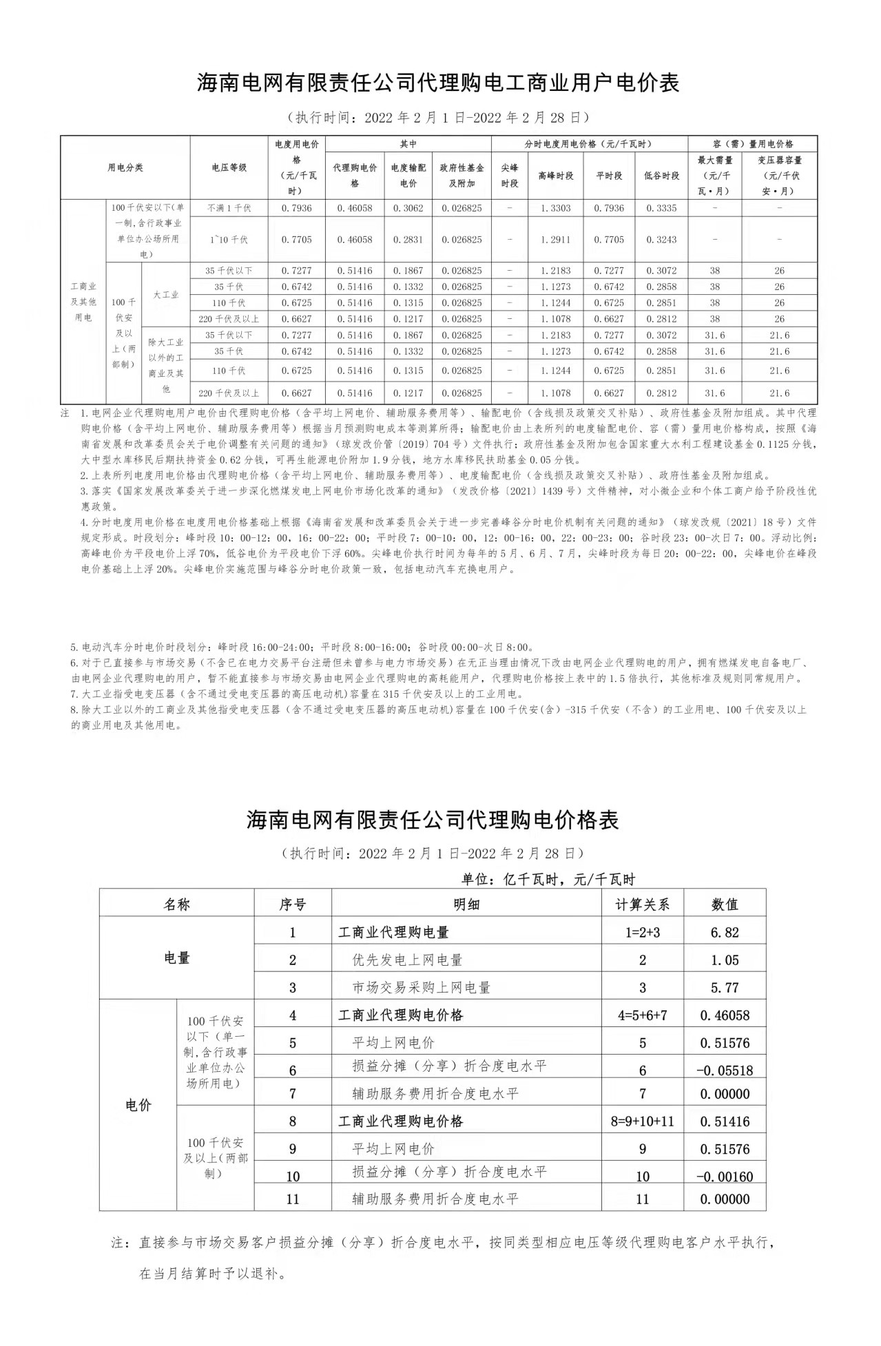 峰谷電價差超0.9元!海南2月電網代理購電價南方電網公司公布海南省2022年2月電網代理購電價格,峰谷電價差超過0.9元/度。