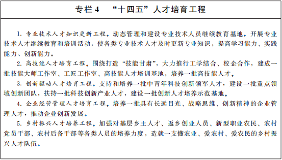 第七章 大力培育創(chuàng)新人才 著力聚集創(chuàng)新人才。把人才作為甘肅創(chuàng)新發(fā)展的第一資源,大力培養(yǎng)和引進(jìn)各類創(chuàng)新創(chuàng)業(yè)人才和團(tuán)隊(duì)。緊扣特色產(chǎn)業(yè)、重大項(xiàng)目、優(yōu)勢(shì)學(xué)科需求,加強(qiáng)創(chuàng)新型、應(yīng)用型、技能型人才培養(yǎng),壯大高水平工程師、高技能人才隊(duì)伍。支持發(fā)展高水平研究型和應(yīng)用型大學(xué),加強(qiáng)基礎(chǔ)研究和高技能人才培養(yǎng)。更多依靠市場(chǎng)機(jī)制和發(fā)揮企業(yè)作用,促進(jìn)人才要素市場(chǎng)化配置。大力引進(jìn)高層次和急需緊缺人才,加大青年人才集聚、培養(yǎng)力度,壯大青年科技人才后備軍。鼓勵(lì)開展柔性引才引智,促進(jìn)外部智力與我省需求對(duì)接,提高科技創(chuàng)新產(chǎn)出效益。重點(diǎn)支持優(yōu)秀科技人才創(chuàng)辦科技型企業(yè)。培育覆蓋全省所有鄉(xiāng)鎮(zhèn)、服務(wù)全省鄉(xiāng)村振興的科技特派員隊(duì)伍。發(fā)揮歐美同學(xué)會(huì)作用,助力生物醫(yī)藥和中醫(yī)藥產(chǎn)業(yè)高質(zhì)量發(fā)展。