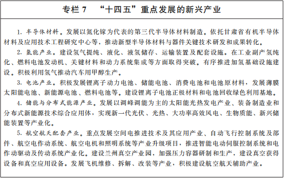 第十章 發(fā)展壯大新興產(chǎn)業(yè) 構(gòu)筑產(chǎn)業(yè)體系新支柱。搶抓新一輪科技革命和產(chǎn)業(yè)變革機(jī)遇,推動(dòng)新興產(chǎn)業(yè)特色化、專業(yè)化、集群化發(fā)展,大力發(fā)展半導(dǎo)體材料、氫能、電池、儲(chǔ)能和分布式能源、電子、信息等新興產(chǎn)業(yè)。壯大碳纖維產(chǎn)業(yè),發(fā)展航空航天配套及飛機(jī)拆解產(chǎn)業(yè)。發(fā)展區(qū)域應(yīng)急產(chǎn)業(yè)。引進(jìn)和培育無人機(jī)產(chǎn)業(yè)。鼓勵(lì)有條件的地方設(shè)立新興產(chǎn)業(yè)專項(xiàng)資金,引導(dǎo)帶動(dòng)社會(huì)資本設(shè)立產(chǎn)業(yè)投資基金。建立中小微企業(yè)信貸風(fēng)險(xiǎn)補(bǔ)償機(jī)制,加大對(duì)新興產(chǎn)業(yè)的支持力度。