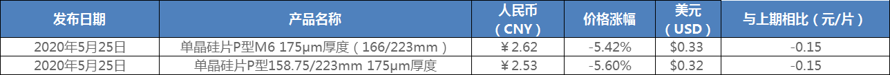 2020年5月25日隆基單晶硅片價(jià)格公示2020-05-25 10:06來(lái)源:隆基瀏覽數(shù):22次