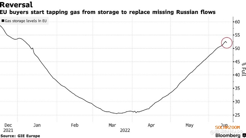 在俄羅斯上周削減北溪1號管道的天然氣供應后,歐盟天然氣買家開始從庫存提取天然氣,以彌補天然氣供應缺口。 德國聯(lián)邦網(wǎng)絡(luò)局表示,德國周六的儲氣量從周五的56.3%增至56.7%,但仍低于往年同期的平均水平。
